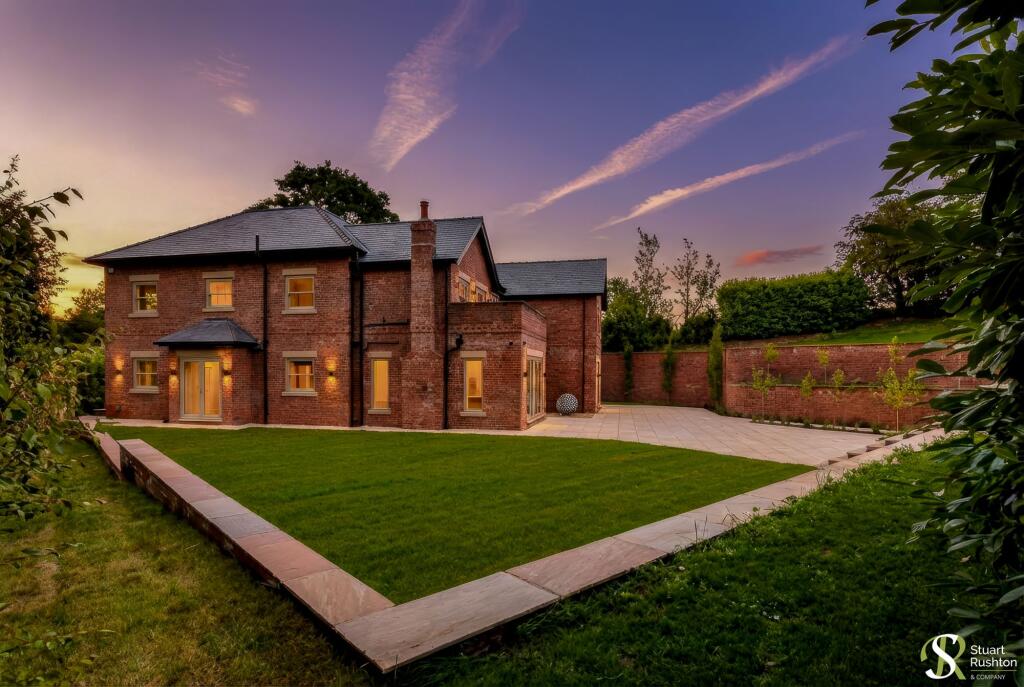 A stunning newly completed detached family home, offering approximately 6,500sqft of expansive living space, crafted with exceptional attention to detail. This residence, ready to move into today, masterfully blends classic architectural elegance with contemporary features, showcasing a striking brick exterior accented by sandstone cills and heads, and refined stone detailing on the front facade. The photographs show the new finished house, and are mixed with some useful CGI’s to show how the house might look furnished.