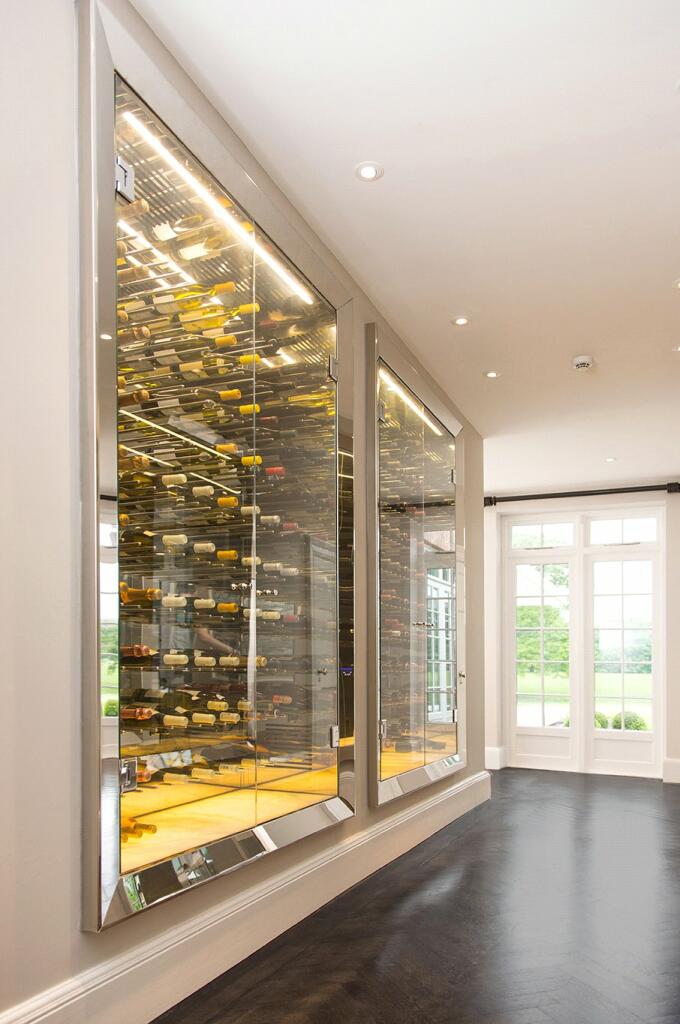 • Bespoke onyx and mirror wine storage wall, temperature-controlled