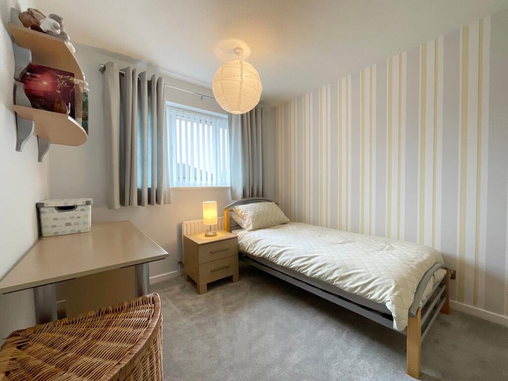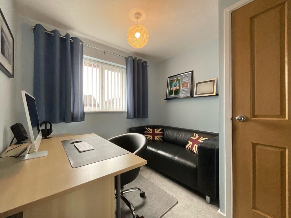 Bedroom two mirrors the generous proportions of the master and also benefits from built-in wardrobes, making it ideal for family members or long-term guests. Bedroom three, currently arranged as a welcoming guest room, is slightly smaller yet comfortably accommodates a double bed and includes its own built-in wardrobe, offering excellent versatility. Bedroom four is a well-proportioned single room with fitted storage, presently used as a home office/study. However, its flexible layout would suit a nursery, hobby room, or additional bedroom with ease.