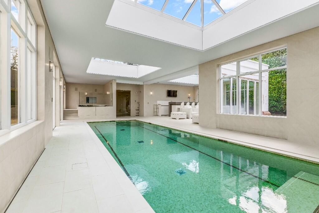 The heart of the home is its remarkable leisure suite, a private retreat featuring an indoor swimming pool, jacuzzi, sauna, and stylish poolside bar - perfect for year-round enjoyment. Adjacent to the pool area, a dedicated games room and a fully equipped cinema room provide additional space for relaxation and entertainment, making this property ideal for hosting guests or enjoying time with family.