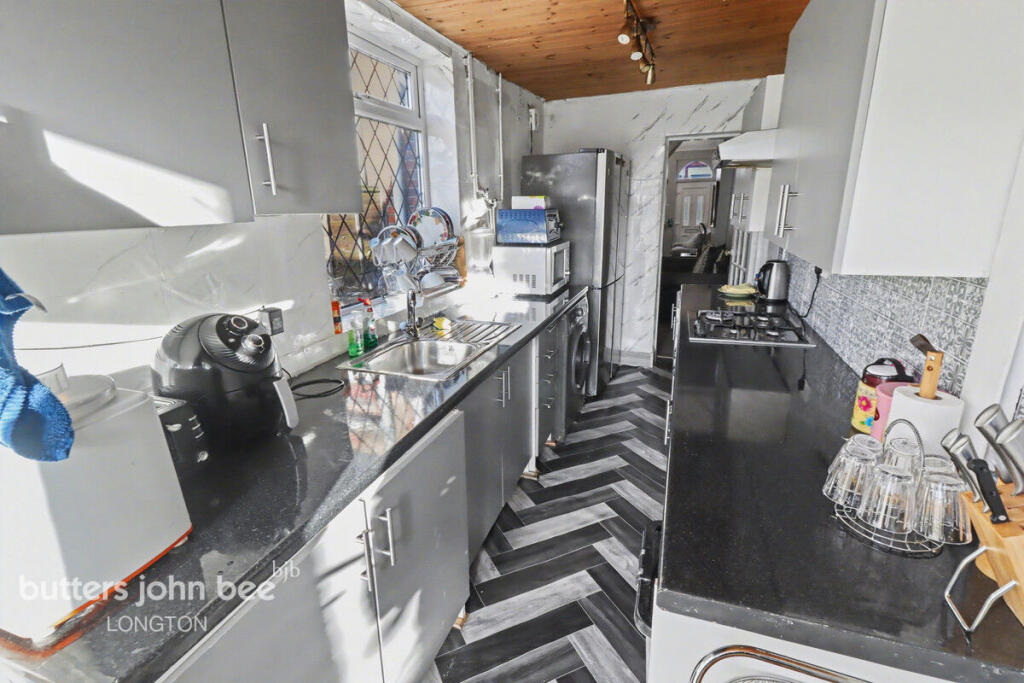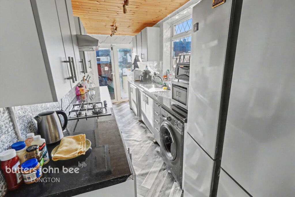 To the rear, you’ll find a larger-than-average, recently fitted modern kitchen, complete with ample storage and workspace—perfect for keen cooks and busy households alike. At the far end of the kitchen, French doors open directly onto the impressive rear garden, allowing natural light to flow in and providing the ideal spot for alfresco dining, entertaining, or relaxing in a private outdoor setting.