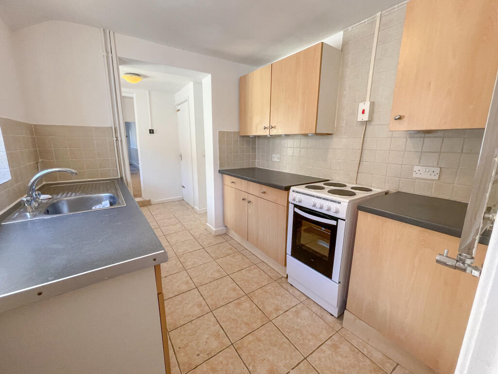 As you enter the front reception room offers a spacious area for seating or could be used as an optional extra bedroom for a rental. Leading off the front room is the rear reception room with stairs leading to the first floor. The kitchen has a range of wall and base units and space for appliances.