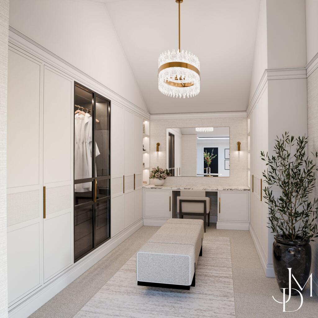 A stunning newly completed detached family home, offering approximately 6,500sqft of expansive living space, crafted with exceptional attention to detail. This residence, ready to move into today, masterfully blends classic architectural elegance with contemporary features, showcasing a striking brick exterior accented by sandstone cills and heads, and refined stone detailing on the front facade. The photographs show the new finished house, and are mixed with some useful CGI’s to show how the house might look furnished.