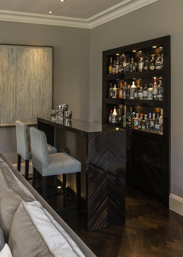 • Bespoke onyx and mirror wine storage wall, temperature-controlled