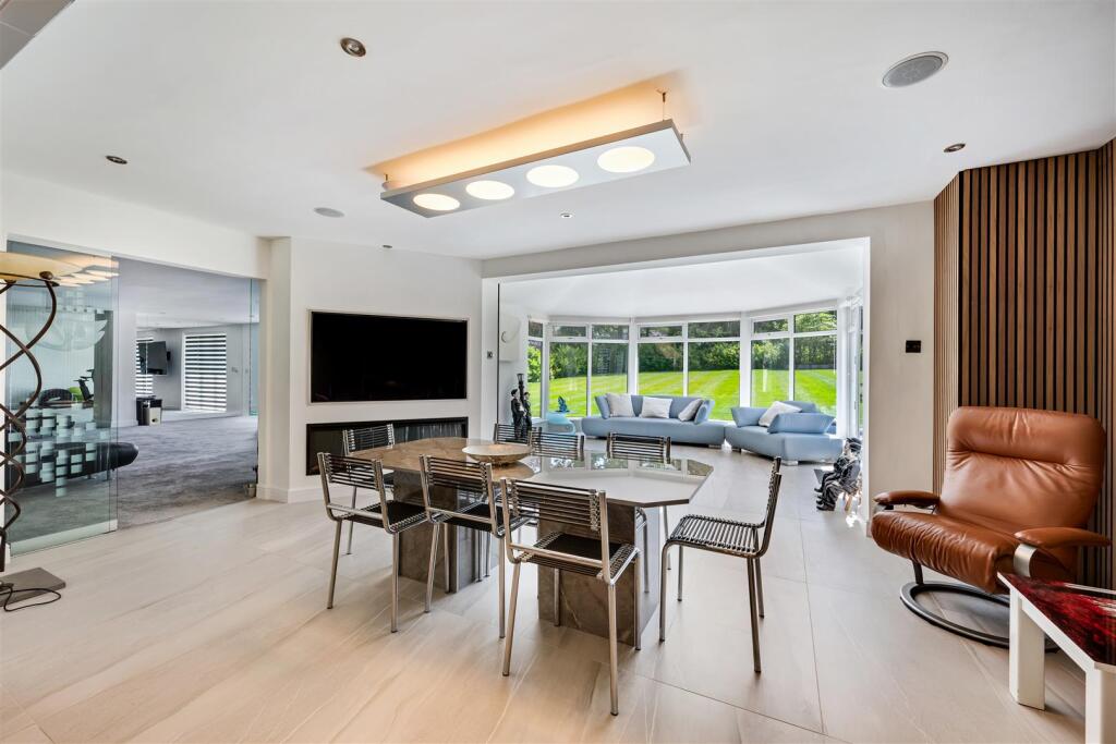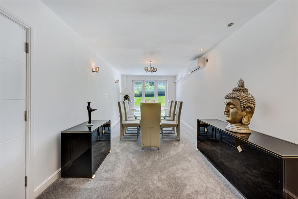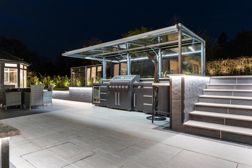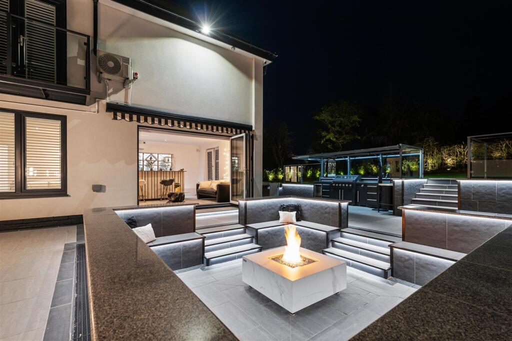 Outside you will find ample parking on the well lit driveway, garages, and access to the enclosed gardens which wrap around the side and rear of the home and include spacious lawns with mature boarders; patio areas; BBQ area; sunken seating area with fire-pit; impressive and well thought out external lighting. There is planning for a swimming pool (planning reference 23/1820M), plus planning for further garage (planning ref 23/0852M).
