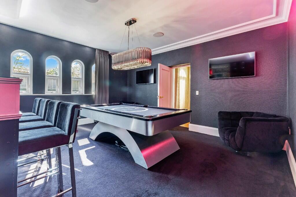 The heart of the home is its remarkable leisure suite, a private retreat featuring an indoor swimming pool, jacuzzi, sauna, and stylish poolside bar - perfect for year-round enjoyment. Adjacent to the pool area, a dedicated games room and a fully equipped cinema room provide additional space for relaxation and entertainment, making this property ideal for hosting guests or enjoying time with family.