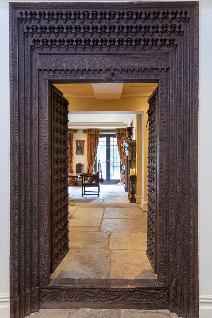 At the heart of the home lies an exceptional Clive Christian kitchen/breakfast room, open to a light-filled morning room. This vast, sociable space features a four-oven AGA, large central island, and three sets of French doors opening to the swimming pool courtyard. Adjoining is a temperature-controlled wine room, utility room, and cloakroom. The formal reception rooms are steeped in character, a panelled games room with fitted bar, a gracious sitting room with large inglenook fireplace, and a drawing room with stone floor and carved stone fireplace. A panelled study and secondary cloakroom complete the ground floor.